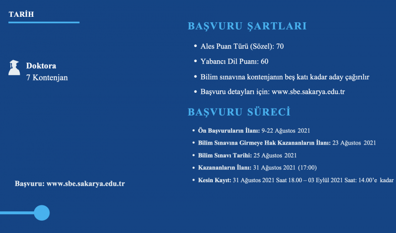 2021-22 SBE Tarih EABD Giriş Sınavları Hk.