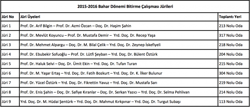 2015-2016 Eğitim Öğretim Yılı Bitirme Çalışması Jürileri