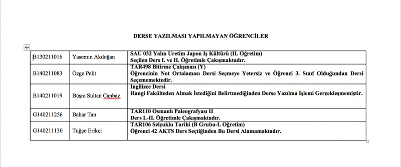 Derse Yazılması Yapılmayan Öğrenciler