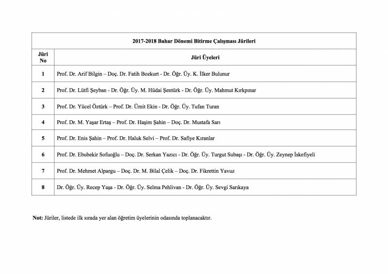 2017-2018 Eğitim Öğretim Yılı Bitirme Çalışması Jürileri