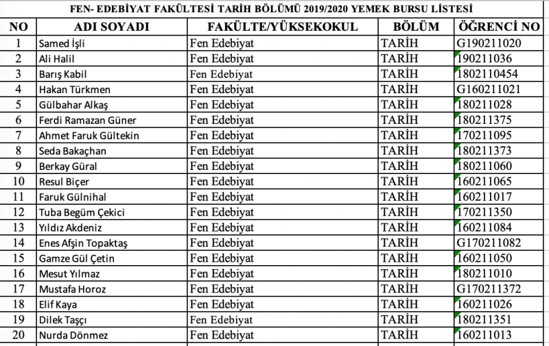 Yemek Bursu Almaya Hak Kazananlar